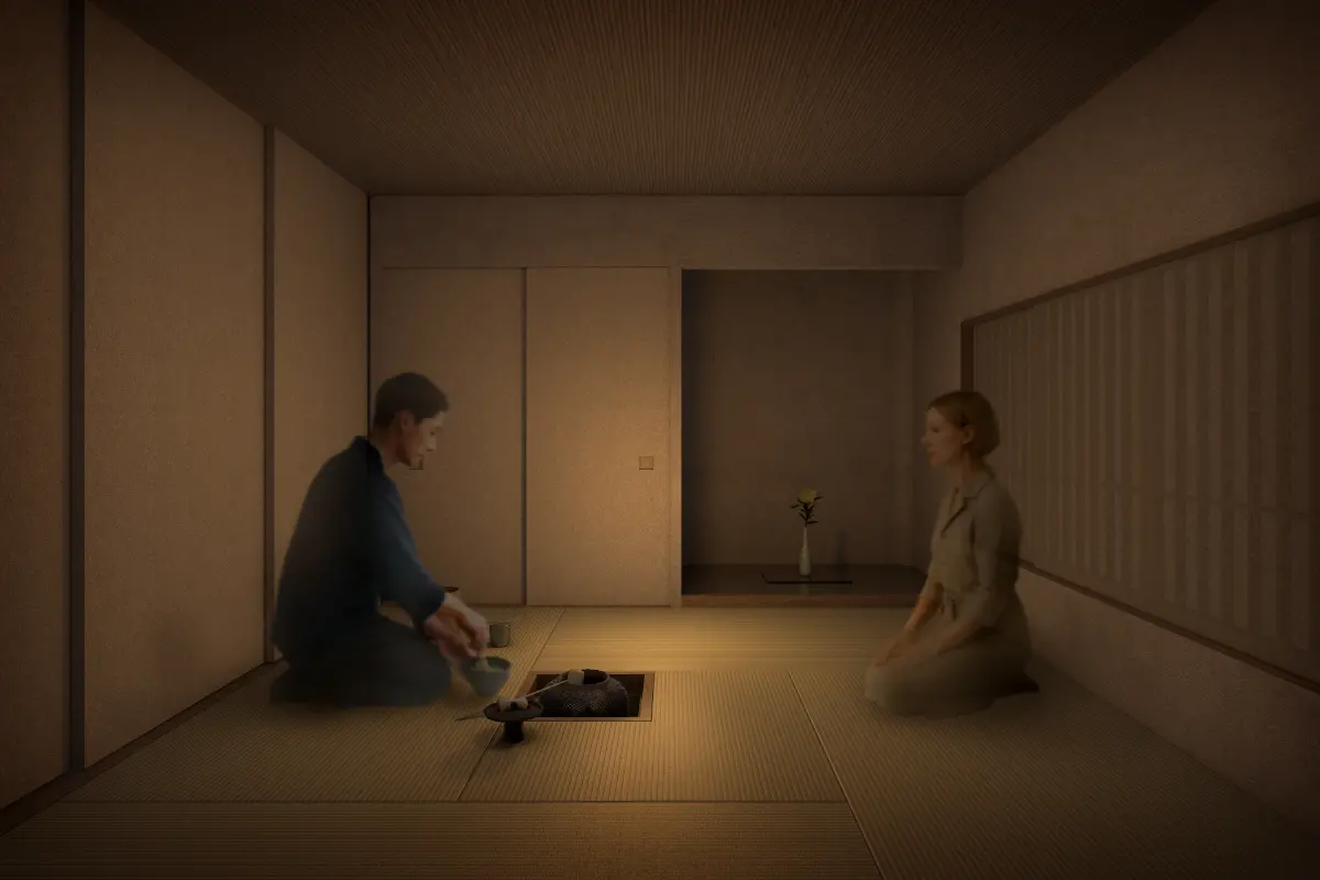 Hospitality That Resonates Through Every Detail Cleanse your body in the steam inspired by Rinkan Cha no Yu, then gently unwind your mind with a quiet cup of tea. As you surrender yourself to the tea room—where the spirit of hospitality lives in every detail— a one-of-a-kind artistic experience naturally emerges through the space itself.